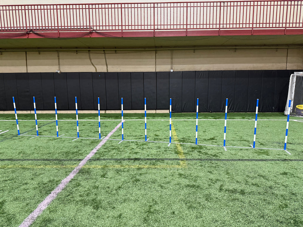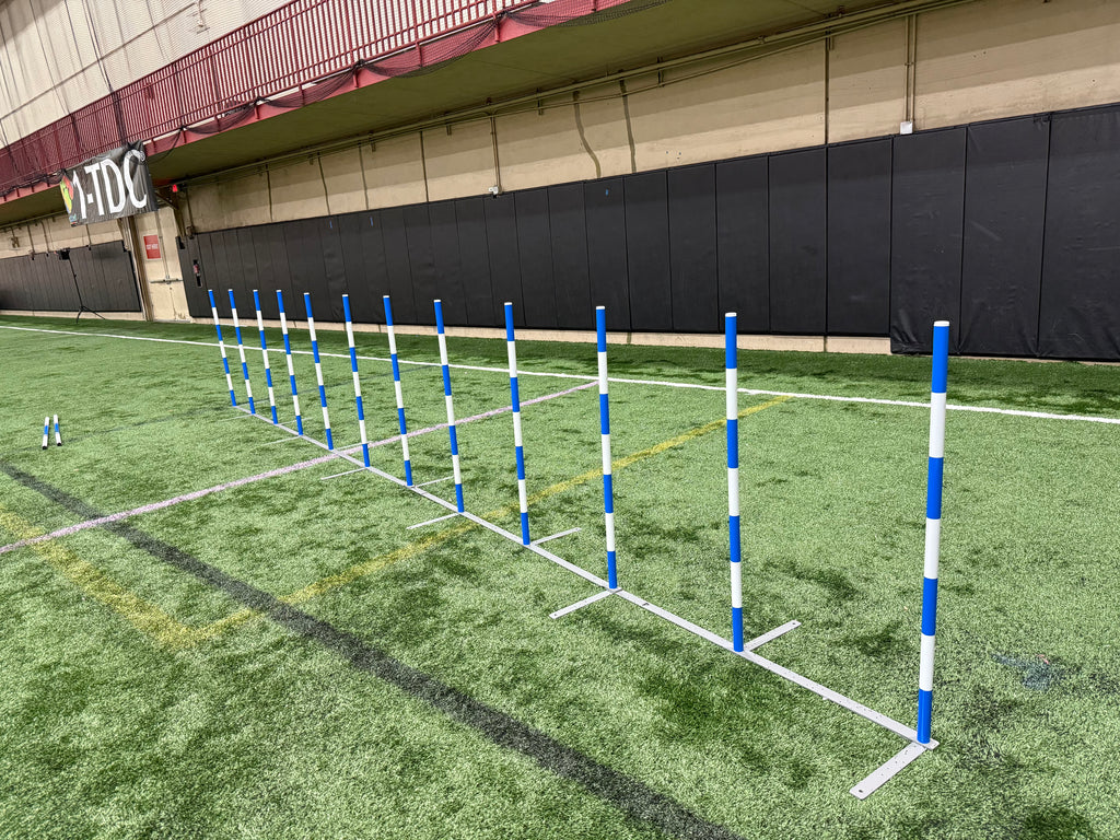 Weave poles slide over top of base peg.