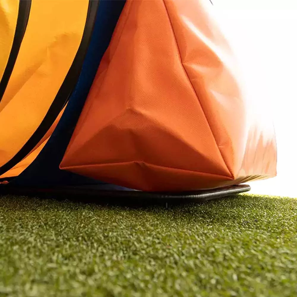 - The exposed screw ends underneath the plate dig in and hold onto artificial turf, natural grass, dirt or shallow sand footing